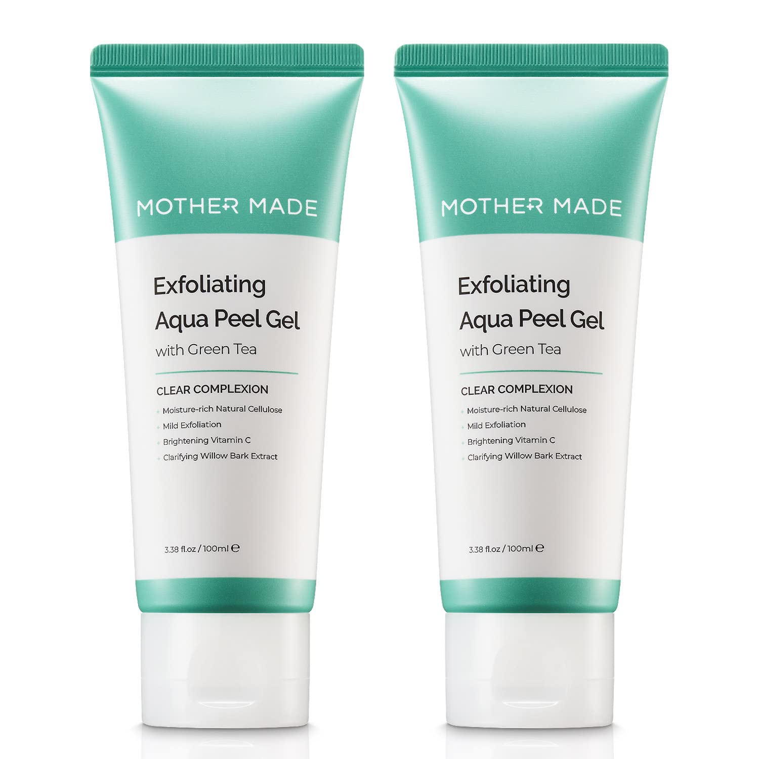 MOTHER MADE Exfoliating Vegan Facial Peeling Solution with Green Tea, Vitamin E, Hyaluronic Acid (Pack of 2) | Gentle Natural Face & Full Body Scrub Exfoliator, Cleansing, Peeling, Korean Skincare
