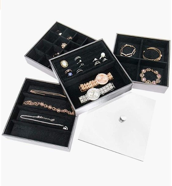 - Stylish stackable for space saving: Stylish Stackable design to match everywhere like living room, dressing table, store and makeup table. It is perfect to organise and display your valuable and important jewellery visibly